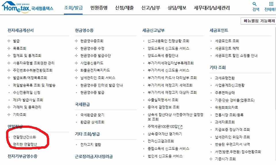 국세청 홈택스 홈페이지 연말정산 간소화서비스