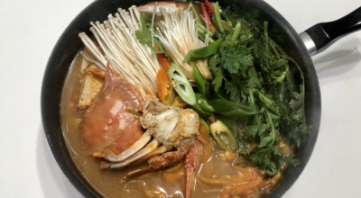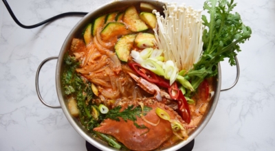 재료 : 꽃게, 국물용 멸치, 다시금마, 물, 된장, 단호박, 무, 팽이버섯, 고춧가루, 양파, 다진 마늘, 모시조개, 당근, 풋고추, 홍고추, 고추장, 매실액, 후춧가루, 전복, 새우, 대파, 생강, 미나리, 부추, 쑥갓