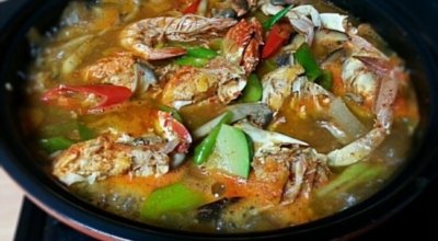 재료 : 꽃게, 국물용 멸치, 다시금마, 물, 된장, 단호박, 무, 팽이버섯, 고춧가루, 양파, 다진 마늘, 모시조개, 당근, 풋고추, 홍고추, 고추장, 매실액, 후춧가루, 전복, 새우, 대파, 생강, 미나리, 부추, 쑥갓
