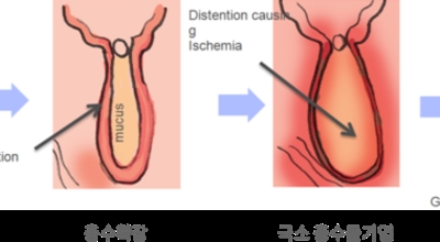 맹장염은 외과의사가 수술하는 복통 중 가장 흔한 질환이지요. 임상양상은 비천공성, 천공된 국소 복막염, 진행된 범발성 복막염 등으로 나타납니다. 대개 치료하지 않으면 충수돌기의 염증은 천공으로 진행되어 복막염이 돼요.