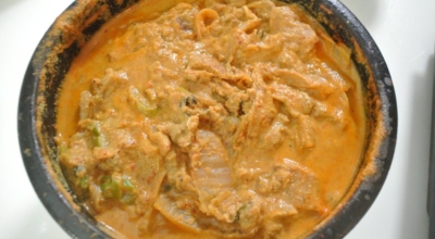 ※재료 : 찌개용 두부 1모, 물 1컵, 진간장 2 큰 술, 고춧가루 2 큰 술, 설탕 1 큰 술, 다진 마늘 1 큰 술, 참기름 1 큰 술, 식용유 1 큰 술, 돼지고기 100g, 신김치 100g, 다진 청양고추 1 큰 술, 들깻가루 1 큰 술, 양파 1/4개, 멸치액젓 약간(간 맞추는 용), 대파 10g