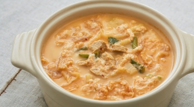 재료 : 콩비지 2와 2/3컵 (400g), 정수물 1과 1/2컵 (270g), 신김치 1컵 (130 g), 다진 돼지고기 약 1/2컵 (85g), 양파 1/4개 (60g), 대파 1/2대 (50g), 새우젓 약 1큰술 (22g), 청양고추 2개 (20g), 식용유 2큰술 (14 g), 간마늘 1/2큰술 (10g), 국간장 1큰술 (10g), 참기름 1큰술 (7g), 굵은 고춧가루 1/2큰술 (4g)