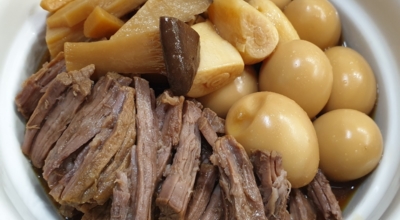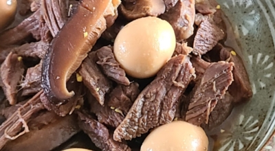 고기를 푹 삶아주는데 50분 정도 삶는다고 하지만 시간 기준보다는 고기가 푹 익은 상태로 체크하는 편이 좋아요. 고기가 푹 익어서 결대로 잘 찢어지는 상태까지 삶으면 되고, 양념한 물은 졸아들어서 고기가 살짝 잠길 정도로 남았을 때를 기준으로 삼으면 돼요. 그 정도까지 삶아 준 후 마늘과 고추를 넣어주고 한소끔 끓인 후 불을 끕니다. 메추리알이나 계란을 넣을거라면 마늘과 고추 넣을 때 같이 넣어주면 되고, 또한 한소끔 끓어오르면 불을 끄면 되겠습니다. 계란과 메추리알은 바로 양념이 배진 않지만 3일 정도 지나면 간장 양념이 쏙 배어서 맛있게 된답니다.