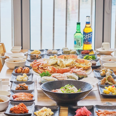 싱싱한 속초 대게를 맛볼 수 있는 대포항에 위치한 직판장입니다. 대포항에서 가장큰 직판장이므로 대게, 킹크랩을 보다 저렴하게 판매된다고 합니다. 대포항의 뷰를 보면서 식사를 만끽할수 있으며 세미뷔페가 셋팅이 되어있어 먹고싶은 음식들을 뷔페처럼 즐길수 있다고 합니다. 동해안에 가면 아무래도 이런 대게와 킹크랩을 한번쯤 맛보게 되는 것 같은데요 속초 간 김에 바다를 보며 맛보시면 더욱 좋을겁니다. 뷔페식 스키다시 가격은 인당 4천원이며 킹크랩 랍스타 대게 등 가격은 싯가로 직접 방문하여 확인하셔야 합니다.