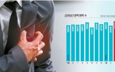 심장에 혈액을 공급하는 심장 혈관이 좁아지거나 막혀 심장 근육에 충분한 혈액 공급이 이루어지지 않아 괴사하는 질환을 심근경색이라고 해요. 돌연사를 일으키는 흔한 원인을 꼽히는 급성 심근경색은 초기 사망률이 30%에 달하고 치료법의 발전에도 불구하고 환자 25명 1명은 퇴원 후 1년 이내 사망하는 무서운 질환이기도 해요. 심근경색은 계절에 관계없이 나타날 수 있지만 특히 겨울에 갑자기 차가운 공기에 노출되면 몸 속 혈관이 수축되면서 혈압이 상승하게 되어 심장에 큰 무리가 올 수 있습니다.
