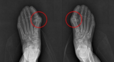 우리에게 잘 알려져 있는 엄지발가락 통증의 원입니다. 선천적 요인으로 인한 발병보다는 하이힐, 뾰족구두, 키높이 깔창과 같이 앞이 좁고 엄지발가락에 자극이 심한 신발 유행으로 후천성 환자가 늘어나고 있습니다. 체중 증가나 류마티스 관절염도 무지외반증의 원인입니다. 엄지발가락이 둘째 발가락으로 휘어지면서 대측으로 회전해서 제1중족 관절이 안쪽으로 돌출되는 무지외반증은 서있거나 걸어 다닐때 신발과 마찰해 통증과 염증이 발생합니다.