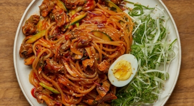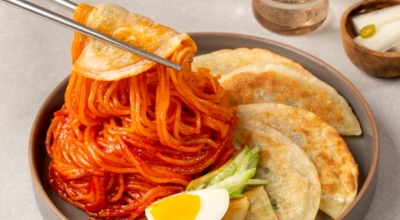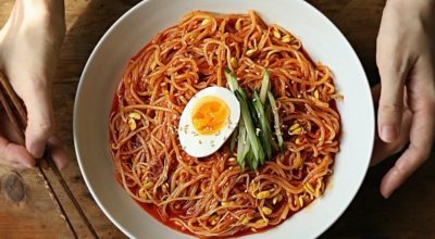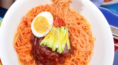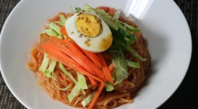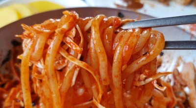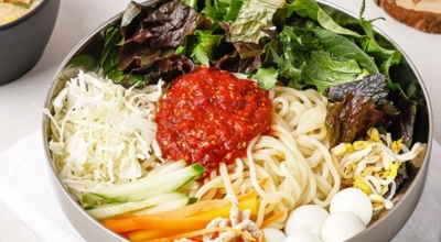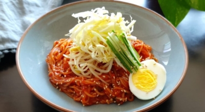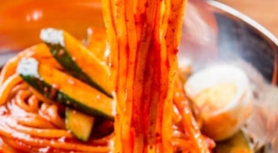 굵고 탄성이 강력한 면발. 또는 그 면발을 활용하여 채 썬 양배추, 콩나물, 당근, 오이 등과 같은 간단한 채소를 넣고 초고추장을 베이스로 한 소스를 넣은 뒤 차게 해서 복용하는 면요리. 전국 어디의 분식집이나 식당에서 일반적으로 맛볼 수 있다고 하며 어딜 가나 비슷한 맛의 전국구 요리다.