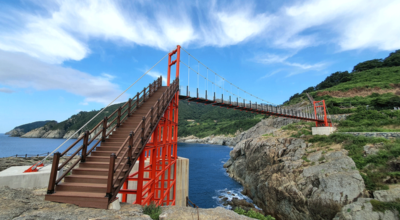 경남 해안에서는 처음 등장한 섬과 섬을 잇는 출렁다리로서 길이 98.1m. 폭 2m 현수교 형식으로 산양읍 연대도와 만지도를 걸어서 오갈 수 있답니다. 다리 주변으로 한려수도의 절경이 펼쳐지고 바람에 따라 출렁임이 생생하게 느껴지는 출렁다리입니다.2013년 10월에 착공해서 2015년 1월에 준공되었다고 하며 연대도는 우리나라 최초의 “탄소 제로 섬” 에코아일랜드로 전국적인 각광받고 있어 산양일주도로, 수산과학관과 연계한 송도~저도~학림도어촌관광지~연대도에코아일랜드~만지도를 연결하는 천혜의 관광코스로 각광 받고 있습니다.