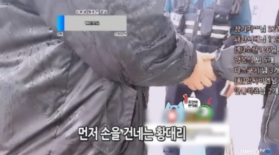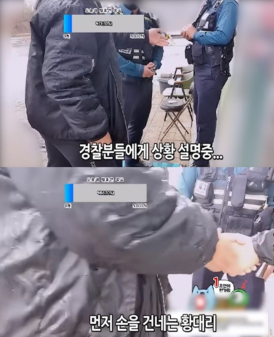 경찰과 사장이 얘기하는 중 황대리TV는 '정중한 사과 한 번이면 족하고 이 집을 신고해서 뭐하냐'며 아까전 사장님의 태도에 아쉬움을 남기고 있었어요. 경찰과 언급 끝난 사장님은 황대리 TV한테 가서 악수하며 사과를 건넸습니다. 그 사과에 황유튜버는 용서를 받아줘요. 그리고 사장님께 밥 먹어도 되냐고 묻자 바로 매몰차게 돌아서 갑니다.
